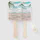 Cena de praia pintada por brisa de ilha, com Ondas de Oceano, praia de Sandy e Palm Trees, com um belo céu azul-lacrimogênio. Com Fontes Modernas De Script De Tipografia. Uma Praia Tropical de Verão, Ou design de casamento de destino - Fãs de Mão do Programa de Cerimônia de Casamento Personalizados! Veja meu compro para ver a suíte de casamento inteira para este design!