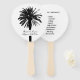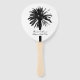 Palmeira de cerimônia de casamento de palmeiras pretas e brancas, encomendar Ventilador de Mão. Adicione seu cronograma itinerário da cerimônia de casamento personalizado. Modelo de tipografia de script clássico para casal se casando e convidados. Personalize com nome e ordem. Excelente para o casamento de verão ou destino em clima exótico. Design de silhueta de palmeira elegante.