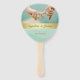 Leques de mão simples e elegantes para festa de casamento na cor verde menta com detalhes em folha dourada e foto personalizada.