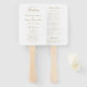 Ventilador de Mão do Programa de Casamento clássico com palavras de sotaque em uma tipografia de caligrafia elegante. Todo o texto está em dourado falso sobre um fundo branco e pode ser alterado para qualquer cor desejada clicando no botão "personalizar". Estes Fãs de Mão do Programa de Casamento são perfeitos para um casamento formal.
