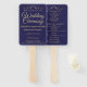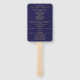 Dê aos seus hóspedes uma maneira fácil e divertida de acompanhar a cerimônia de casamento com esses fãs do programa. Projetados como parte do nosso Dourado e Marinho Elegante Wedding Suite, eles apresentam um simples design, mas elegante, com texto dourado sobre fundo azul marinho com borda floral de folha azul dourada. Totalmente personalizável com locais para inserir detalhes da cerimônia, bem como os nomes da festa de casamento.