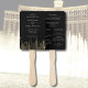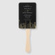 Este fã do programa que apresenta o horizonte de Las Vegas em ouro sobre fundo preto é uma forma excelente de acolher seus convidados e mantê-los legal em tempo quente. O lado frontal os obrigado por vir. O outro lado mostra seus detalhes da cerimônia e sua festa de casamento. Todos os campos podem ser personalizados de acordo com suas especificações