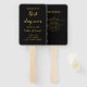 Ventiladores de Mão do Programa de Casamento de Script Dourado e Preto Elegante