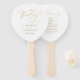 Esses elegantes fãs de mão do programa de casamento apresentam um falso design de tipografia de ouro em fundo branco. Personalize com os nomes da noiva e noiva e a data do casamento na frente e os detalhes da sua cerimônia nas costas. Desenhada por Susan Coffey.