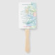 Este colorido fã-mão cor-de-morango, rosa-pavão, chaleira e cerimônia floral tropical turquesa é perfeito para o casal que vai ter um casamento de destino: numa praia havaiana, um casamento na praia da Flórida ou um casamento na praia de Caribe. Imagens em aquarelas de hibisco, folhas exóticas, aves do paraíso, florais tropicais, ananases e palmeiras agrançam o cartão na frente e atrás, em cores de rosa silvestre, lacre, azul-turquesa, verde, laranja, amarelo e vermelho. Fácil de personalizar com as suas próprias informações do programa de casamento.