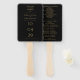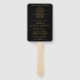 Um elegante fã de mão de casamento preto e ouro minimalista que apresenta os detalhes do seu dia de casamento, em tipografia clássica e chic. Projetado por Thisnotme©