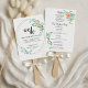 O design apresenta uma elegante moldura oval dourada impressa decorada com hastes de eucalipto em aquarela e uma fita de pêssego/laranja. A parte de trás consiste em um design coordenado de suaves hastes de eucalipto em aquarela e uma floral de laranja/pêssego. Itens correspondentes para completar sua coleção de eventos estão disponíveis em nossa loja Zazzle!