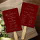 Fã de mão do programa Elegante de casamento, apresentando um moderno roteiro de caligrafia branca com um fundo burgundy para criar um design perfeito para casamentos de todos os estilos e estações. Personalize a frente do programa de casamento moderno com seus nomes, data de casamento e local, e obrigado sua mensagem. O fã do programa de casamento reverte para exibir a ordem de serviço e uma lista de sua festa de casamento. O fã do programa de casamento Burgundy foi criado para coordenar com a nossa coleção de casamento da Modern Elegance.