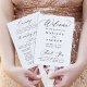 Mantenha seus convidados legal e informados com este fã de mão do programa de casamento de na moda, apresentando uma elegante caligrafia preta em um fundo branco nítido. Perfeito para casamentos em qualquer época e adequado para comemorações formais e casuais, este design moderno e prático permite que casais personalizem a frente com seus nomes, data de casamento, localização e uma mensagem de obrigado-você corajosa em letras negros. O verso mostra os detalhes da cerimônia e os nomes do seu partido, acrescentando um toque pessoal e atencioso. Combinando a funcionalidade com a elegância do eterno, este fã de mão do programa de casamento é uma bela maneira de melhorar a experiência dos seus convidados enquanto complementa a sofisticada estética do seu dia especial.