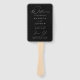 Fã de mão do programa Elegante de casamento, apresentando um moderno roteiro de caligrafia branca com um fundo preto para criar um design perfeito para casamentos de todos os estilos e estações. Personalize a frente do programa de casamento moderno com seus nomes, data de casamento e local, e obrigado sua mensagem. O fã do programa de casamento reverte para exibir a ordem de serviço e uma lista de sua festa de casamento. O fã de mão do programa de casamento preto e branco foi criado para coordenar com a nossa coleção de casamento da Modern Elegance.