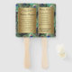 Programa de casamento e detalhes de festa de casamento impressos em um ventilador prático... Pena de pavão elegante e refinada em cores ricas e saturadas do azul real, ouro de cobre e verde esmeralda teal. O pavão é um pássaro imponente com penas ornamentais e faz uma bela exibição para um casamento de verão ou qualquer ocasião Gradientes de ouro com aparência metalílica adicionam um toque de glamour e refinamento.
