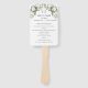 Mantenha seus convidados legal e informados com nosso elegante fã de mão do programa de casamento! Este lindo acessório apresenta uma design impressionante de rosas brancas delicadas na frente e atrás, complementando perfeitamente seu dia especial. A parte frontal do ventilador contém a ordem da cerimônia, garantindo que seus hóspedes possam acompanhar sem problemas. No topo da placa está um monograma personalizado único das iniciais da noiva e do noivo, exibido elegantemente dentro a círculo de folhas. E para torná-lo realmente único, o verso também apresenta uma lista encantadora de sua festa de casamento, introduzindo as pessoas especiais que ficarão ao seu lado. Este favor de casamento funcional e em voga é certamente um bem-estar apreciado para os seus entes queridos durante anos.