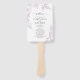 Esses lindos e elegantes fãs de mão do programa de casamento apresentam delicados desenhos florais em roxo lavanda. O texto, incluindo a tipografia da na moda, destaca-se contra um fundo branco. A parte traseira contém mais modelos de texto para listar a festa de casamento e adicionar uma mensagem de obrigado sentida.