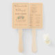 Aqui é mostrado um pessegueiro tropical e fã de mão do programa de casamento lacrimogêneo que é criativamente desenhado. Criado com estoque de cartão resistente, este design apresenta um fundo de pêssego com texto em caracteres castanhos. Fácil de navegar, os modelos tornam a personalização uma brisa. Personalize seu fã de casamento hoje!