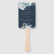 Mantenha seus hóspedes legal e informados com nosso ventilador de mão dos programas de casamentos florais azuis. Apresentando um belo design de delicados florais azuis de inverno e verde macio, este ventilador de mão adiciona um toque charmoso e funcional ao seu casamento no inverno. O fã mostra seu itinerário do dia do casamento, detalhes da cerimônia e informações da festa noiva em formato de na moda. Perfeito para cerimônias ao ar livre ou no interior, este elegante ventilador de mão combina a praticidade com a estética da terra maravilhosa do inverno, garantindo que seus convidados fiquem confortáveis enquanto apreciam seu dia especial.
