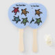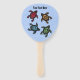 Este ventilador manual do programa é azul com quatro tartarugas abstrato pretas com marcas coloridas em vermelho, amarelo, azul e verde. Personalize seu texto na frente e atrás com o modelo.