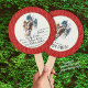 Um fã do partido derby red border, de dois lados, apresenta cavalos de corrida e jockeys e, de um lado, um lugar para seus hóspedes anotarem suas apostas de derby com seu nome no outro lado. CORRESPONDENTE a itens na nossa coleção.