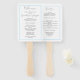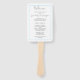 Programas de casamento de fãs minimalistas em uma vara. Conselho branco com modelos de texto de cinza em fontes modernas manuscritas para personalizar o seu evento. Uma vez que as cartas estejam anexadas à haste, o texto estará em ambos os lados. Uma linha azul aqua fina enquadra o texto para uma apresentação simples que corresponderá a qualquer tema.