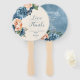 Um floral brilhante e ousado de rosas em tons de azul empoeirado e pêssego é o ponto focal de muitas das peças desse suite de casamento que também contém textos elegantes e layouts modernos de design. O fã de mão do casamento mostrado aqui tem uma borda lateral de rosas e um belo abstrato de aquarela no verso em tons azuis empoeirados. Insira facilmente sua mensagem pessoal e os detalhes da cerimônia de casamento usando o modelo fornecido. Procure ID584 para ver todas as peças correspondentes neste belo conjunto de casamento.