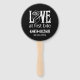 Celebrar seu dia especial no tema Gótico com esses fãs de mão impressionantes, que apresentam o sentimento sapateado e cheio de trocadilhos, "Love at First Bite" em letras inspiradas no Gótico (e o esboço de um rosa, em pé para a letra 'O') e os nomes dos recém-casados e a data do casamento em fundos negros (frontais) e rosas vermelhas românticas (traseiras). Design © W.H. Sim. Mais informações em zazzle.com/expressionsoccasions
