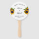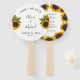 Rustic modern traditional style wedding save the date hand fan featuring a beautiful sunflower border and modern script calligraphy over a clear white background. ++++++++ Ideal for your summer or autumn fall elegant outdoor floral garden, farmhouse barn, or backyard themed weddings. Personalize it with the bride's and groom's names and wedding details on both sides!