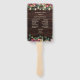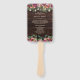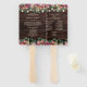 Ventiladores de mão do programa de cerimônia de núpcias em uma bela madeira rústica com luzes de cordas e floral de cor d'água entrelaçado. Eles incluem o programa da cerimônia junto com os nomes dos pais da noiva e do noivo, o partido oficial, noiva e outros participantes. Perfeito para o casamento do celeiro ou do campo. Entre em contato conosco para obter ajuda sobre a personalização ou produtos correspondentes.