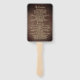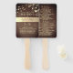 Mantenha os convidados legal e informados com este elegante fã de mão do programa de casamento de dois lados. Apresenta um fundo de madeira falsa, sotaques florais dourados, luzes de cordas e espaço para detalhes de cerimônia e nomes de festas de casamento. Um toque perfeito para o outono, rústico ou celebrações ao ar livre.