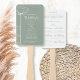 Este fã do programa, com um floral branco ousado sobre um fundo verde sábio, é uma forma excelente de acolher seus convidados e mantê-los legal em tempo quente. O lado frontal os obrigado por vir. O outro lado mostra seus detalhes da cerimônia e sua festa de casamento. Todos os campos podem ser personalizados de acordo com suas especificações