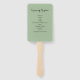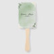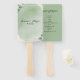 These wedding program fans feature a soft sage green watercolor backdrop framed by a delicate double white border, with airy eucalyptus sprigs and tiny blossoms accenting the edges for a romantic, garden-inspired look. The clean, spacious layout leaves ample room for your ceremony details while the fan shape keeps guests cool and comfortable, perfectly coordinating with the rest of your elegant botanical stationery suite.