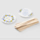 This round, sunflower paper fan is a beautiful way to share present your wedding program to your guests. Personalize the front with your initials and customize the wedding party information on the back. Add your thank you message to your guests for a finishing touch. This wedding hand fan is versatile for yellow and dusty blue wedding colors. This paper hand fan is a great addition to your outdoor summer wedding ideas.