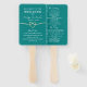 Moderno, minimalista, elegante, caligrafia simples, fãs de mão do programa de casamento teal com coração de corda de ouro.