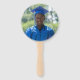 Fãs personalizados de mão fotográfica para o evento de audiência de graduação que vocês sabem que vai ser quente. Imagem clássica de um boné de formando azul e uma coroa de louros acentuadas com borda dourada e seu próprio texto. Sua foto do formando no verso. Veja convites correspondentes, placas de estaleiro, suprimentos de festas e outros grupos de cores também disponíveis neste mesmo design. Crédito da foto: Michelle Raponi, de Pixabay
