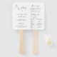 Fã clássico do programa de casamento branco com "o casamento de" em um roteiro delicado. A frente tem sua obrigado que você envia e a parte de trás tem sua ordem de cerimônia e festa de casamento. Um simples fã de mão do programa de casamento sem qualquer placa gráfica torna isto um design elegante e eterno, perfeito para um casamento formal.