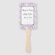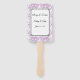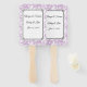 Este ventilador da pá de casamento é mostrado em um impressão de fundo floral lavanda com nomes de exemplo e data, personalize e mude o texto para o seu.
