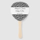 Este ventilador da pá de casamento é mostrado com um elegante impressão de damasco preto e branco e nomes de exemplo e data. Personalize este item e altere os nomes e a data para o que você precisa.