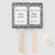 Este ventilador da pá de casamento é mostrado com um elegante impressão de damasco preto e branco e nomes de exemplo e data. Personalize este item e altere os nomes e a data para o que você precisa.