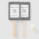 Este ventilador da pá de casamento é mostrado com um elegante impressão de damasco preto e branco e nomes de exemplo e data. Personalize este item e altere os nomes e a data para o que você precisa.