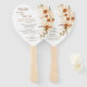 Compartilhe seus detalhes especiais do dia com elegância usando este fã do programa de casamento em forma de coração. Apresentando um design floral rústico em tons de terra quente, este fã de mão único é prático e romântico. Perfeito para casamentos ao ar livre, cerimônias de verão ou comemorações de jardim, mantém os convidados legal enquanto mostra seu programa de cerimônia e sua festa de casamento. Personalize com seus nomes, data e detalhes de casamento para uma manutenção única que complementa temas de casamento rústicos, boho ou românticos.