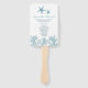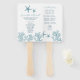 Este fã do programa de casamentos de praia apresenta coral tropical e estrelas-do-mar em azul mudo em ambos os lados. Os nomes da noiva e do noivo e a linha cronológica do programa de casamento da ilha são definidos em letras robustas e azuis e na tipografia sans serif. Este tema litorâneo duplo é uma escolha de praia para luau, havaiano, verão, destino e casamentos temáticos no mar da Flórida. Projetado por Victoria of VG Invites. Para mais informações, visite www.zazzle.com/vginvites