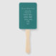 Este fã do programa de casamento botânico apresenta palma tropical aquarela e folhas monstera em tons de verde num fundo branco nítido. Os nomes da noiva e do noivo e a linha cronológica do programa de casamento são definidos na escrita à mão e na tipografia sans serif. A ordem processiva do casamento reverte para uma cor verde esmeralda sólida. Esta design dupla face é uma escolha moderna para casamentos costeiros, de verão e de jardins tropicais. Desenhada por Victoria Grigaliunas do Do Tell A Belle. Para saber mais sobre o tema do casamento de filipiniana, visite www.zazzle.com/dotellabelle