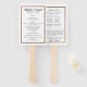 Perfeito para casamentos, este programa de fãs de dois lados apresenta texto fácil de personalizar com os eventos da cerimônia de casamento de um lado e a festa de casamento listada no outro com espaço para uma mensagem escrita sincera do casal ser. O texto preto elegante é sofisticado, combinado com uma simples imagem de brilho dourado falso.