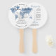 Ventilador do Programa de Casamento do Mapa do Mundo Azul e Branco para um tema de viagem ou casamento de destino. Personalizar é muito fácil, você pode alterar fontes, cor do texto, cor do plano de fundo e design clicando em PERSONALIZAR MAIS.