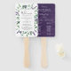 Esta lavanda rústica e fã do programa de casamento de eucaliptos é perfeita para um casamento simples e elegante ao ar livre. O design floral apresenta folhas de cor aquosa de eucalipto e verde com espinhos de flores silvestres roxas. Inclua o nome da noiva e do noivo, a data e a localização do casamento, a mensagem do obrigado, a ordem do serviço e a festa noiva. Solicite seus programas montados ou não.
