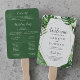 Este fã do programa geométrico de palmeiras tropicais selvagens é perfeito para um casamento de praia ou destino. A design apresenta um conjunto exótico de folhas de palmeiras de banana-d'água verde, samambaias, folhagem, plantas botânicas e verde para uma sensação tropical de verão. Inclua o nome da noiva e do noivo, a data e a localização do casamento, a mensagem do obrigado, a ordem do serviço e a festa noiva. Solicite seus programas montados ou não.