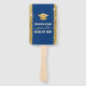 Ventilador personalizado de papel impresso com alça com o nome do monograma de fotos e scripts do seu formando e o texto "classe de 2025" de qualquer ano e um design brilhante azul e dourado faux. Os fãs são perfeitos para cerimônias de graduação ao ar livre, prêmios, casa aberta e festa de formatura.