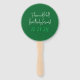 Fã de casamento em verde. Fontes modernas para nomes do casal na frente, com um grande sinal de "e". Inclua a data da cerimônia e "Para ter e segurar a partir deste dia" no verso. Mostrado no ventilador redondo, mas este design funciona em todas as formas.