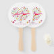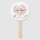 Bonito fãs de papel de chá de panela de casamento, ideais para honrar a noiva. Flores coloridas num spray em forma de coração com fita em design de casamento floral rosa, verde, azul, laranja e amarelo. Edite esses fãs coloridos com sua noiva honrosa para ser o nome. Arte de design e aquarela exclusiva de Sarah Trett www.sarahtrett.com para www.mylittleedenweddings.com no zazzle.