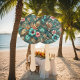 Ventiladores Tropicais de Elegância, fãs portáteis elegantemente projetados com um padrão refinado de inspiração tropical, perfeito para adicionar estilo e função a casamentos de jardim ou praia, ou qualquer evento temático tropical. Esses fãs são ideais para manter os convidados legal enquanto complementam sua decoração de casamento com um toque de sofisticação e charme. Eles fazem excelentes favores de casamento ou acessórios pensativos para uma celebração memorável. Este design é criado usando uma imagem AI editada digitalmente.