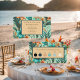 Ventiladores de Iridescência Tropical, fãs portáteis incrivelmente projetados com um padrão inspirado no tropical com um toque iridescente brilhante, perfeito para adicionar elegância e funcionalidade a casamentos de jardim ou praia, ou qualquer evento temático tropical. Estes fãs não só mantêm os convidados legal, como também melhoram a vossa decoração com o seu charme tropical radiante e sofisticado. Eles fazem favores de casamento ou acessórios de na moda para o seu dia especial. Este design é criado usando uma imagem AI editada digitalmente.
