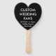 FANS (conjuntos de 10) Vazio de Modelo personalizados de 6 pol. PRETO, impressos personalizados. Design, crie, faça o seu. Sua foto de casamento, imagem, mensagem, texto, noiva e nomes de noivos, logotipo, gráficos, em impressão de cor de cheio, projetado individualmente em ambos os lados do ventilador. Diâmetro de 5,75". Disponível em estoque de papel branco e náutico (personalize para qualquer cor). É necessário um conjunto simples - alças de madeira e 4 pontos de cola por ventilador incluídos (disponível pré-montado para uma sobrecarga). Arredondado, em forma de coração, remo ou retângulo disponíveis. Melhor para casamentos, mas também excelente para um doce aniversário de 16 anos, Quinceanera, ou qualquer evento quente, de verão ou ao ar livre, e para uso de marketing ou promocionais corporativos e empresariais.